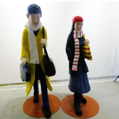 大型学校商场售楼部门厅卡通抽象男女情侣人物玻璃钢树脂雕塑摆件
