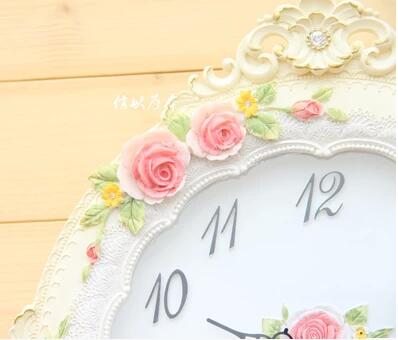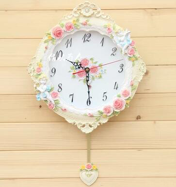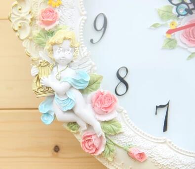 新品欧式带玻璃罩树脂挂钟田园卧室客厅静音天使玫瑰钟表挂表壁钟